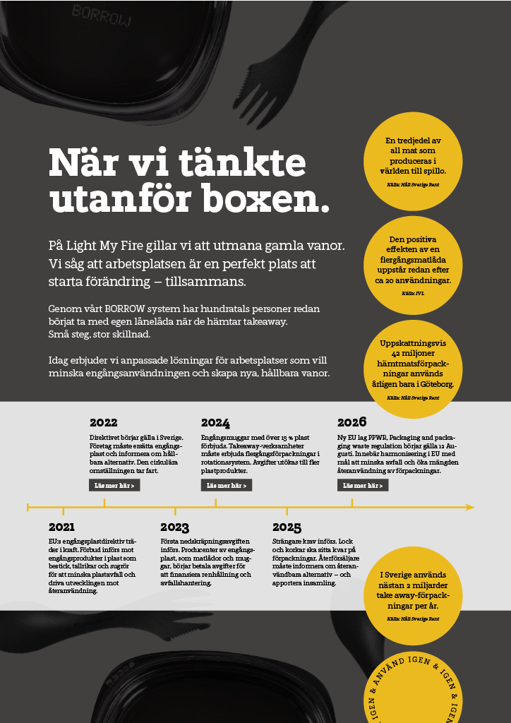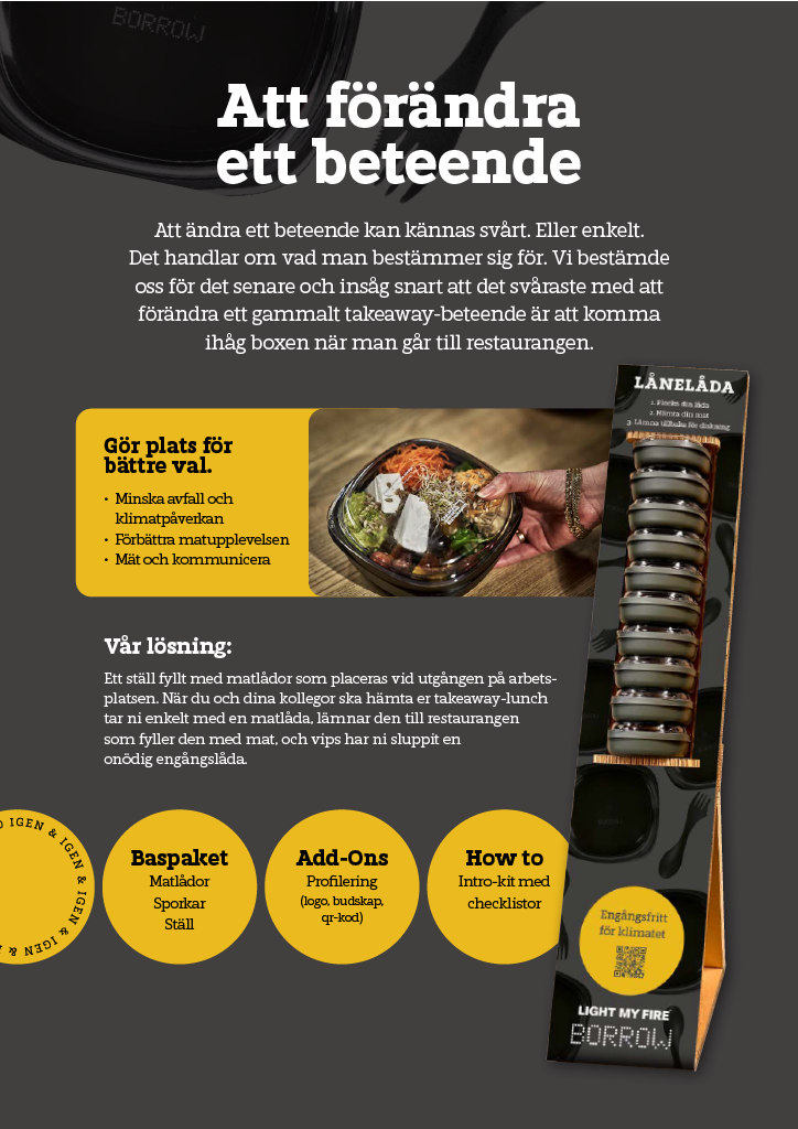 A simple workplace solution that replaces single-use takeaway packaging with reusable containers.